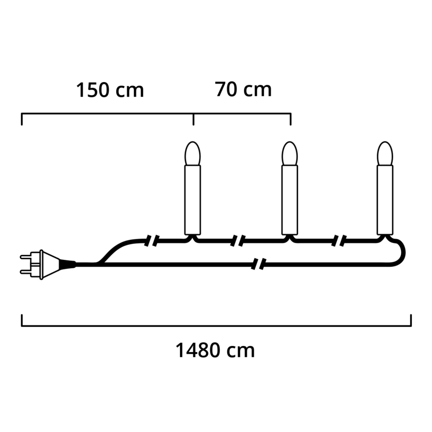 | Sonstige Maße | Zuleitung 150 cm, Kerzenabstand 70 cm |