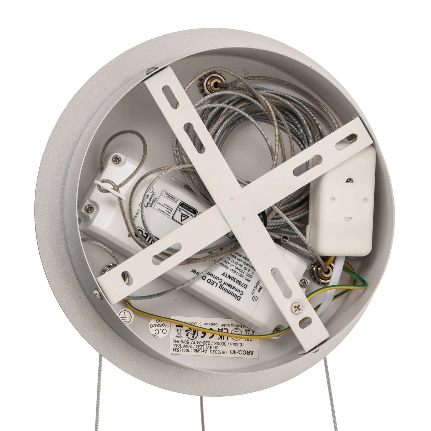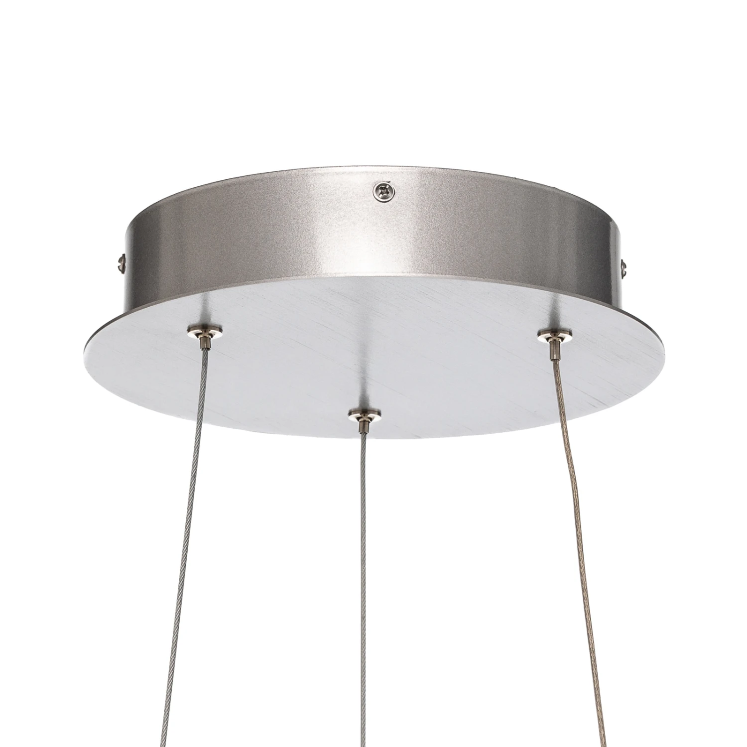 Silberne LED-Hängeleuchte Answin in modernem Design mit Leuchtenschirm in Kreisform