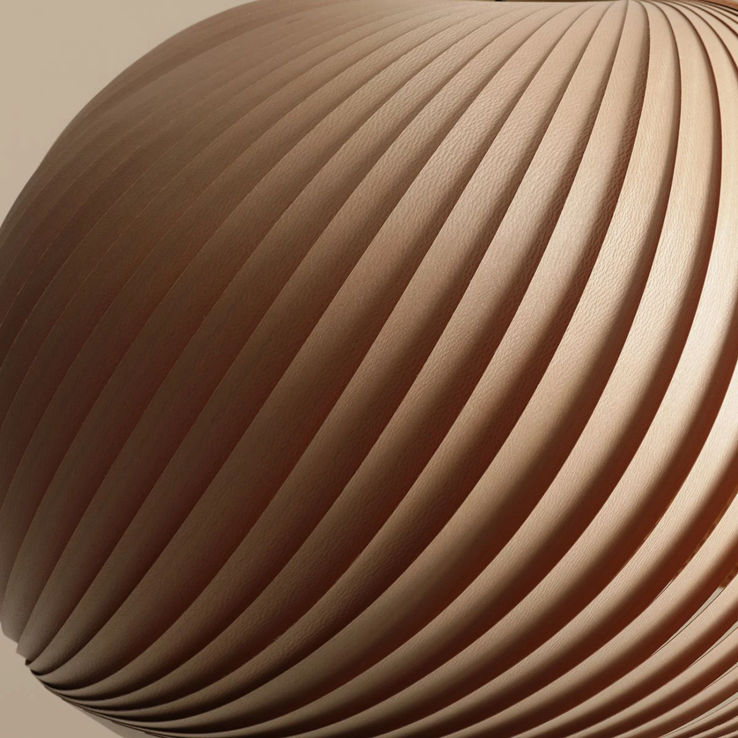 Janne ist eine Hängeleuchte in auffallender Form mit einem beeindruckend großen Lampenschirm in runder Optik. Der Schirm präsentiert sich in einer faszinierenden, braunen, sehr natürlich gehaltenen Farbe, die das Licht sanft im Raum verteilt und eine angenehme Atmosphäre schafft. Dies entsteht nicht zuletzt durch das dunkle Buchenholz. Ein umweltfreundliches Modell, das für Liebhaber des Öko-Trends und von warmen, sanften Farben in Innenräumen entwickelt wurde.
