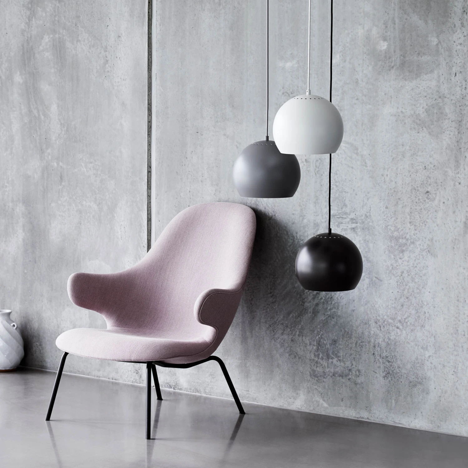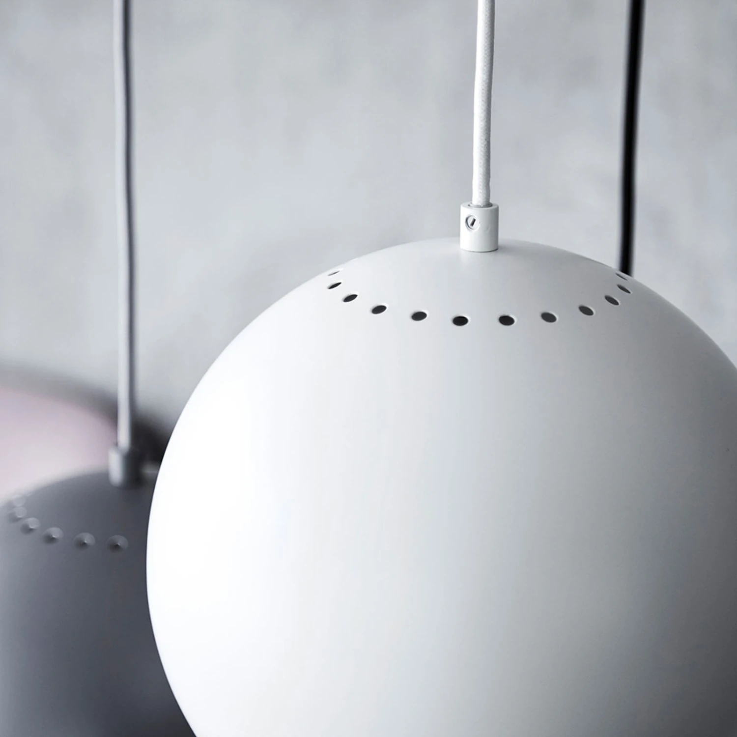 In der neuesten Version der Pendelleuchte Ball ist die Innenseite des Schirms weiß gehalten, das bewirkt eine noch bessere Lichtreflexion. Diese Pendelleuchte passt dank ihrer zeitlosen Schönheit zu vielen Einrichtungsstilen und bietet eine komfortable Grund- oder Bereichsbeleuchtung. Dabei wird das Licht hauptsächlich direkt nach unten abgestrahlt, ein kleiner Teil dringt aber auch durch die kleinen, kreisförmig angeordneten Löcher an der Oberseite des Schirms.