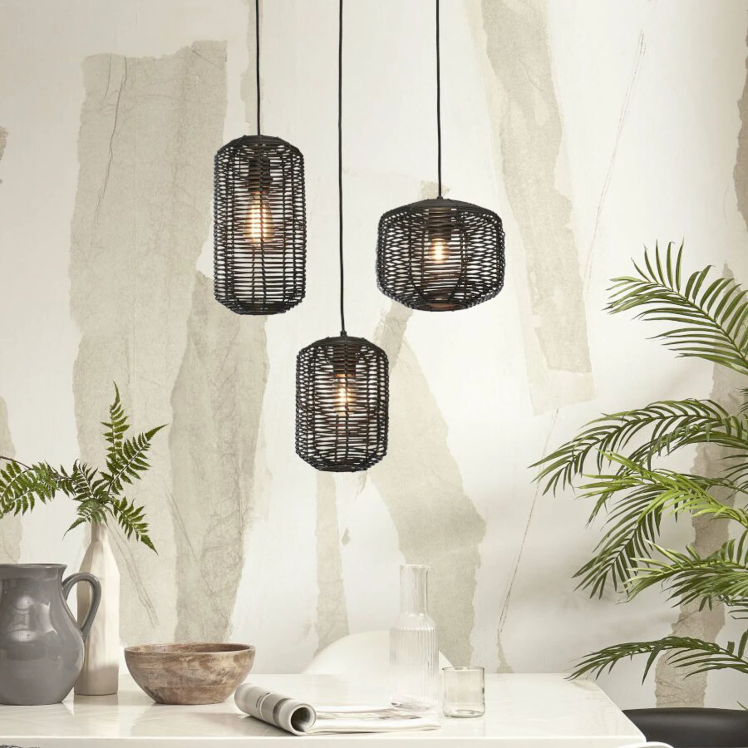 Dank ihres schmalen, länglichen Schirms eignet sich die Hängeleuchte Tanami auch für kleine Räumlichkeiten. Beispielsweise kommt sie wunderbar über dem Wohn- oder Esszimmertisch zur Geltung, kann aber ebenso gut im Schlafzimmer ihren Platz finden. Der Schirm wurde aus Rattan gefertigt und hängt an einer schwarzen Textilabhängung hinab. Tanami bringt eine schöne natürliche Note in den Wohnbereich.