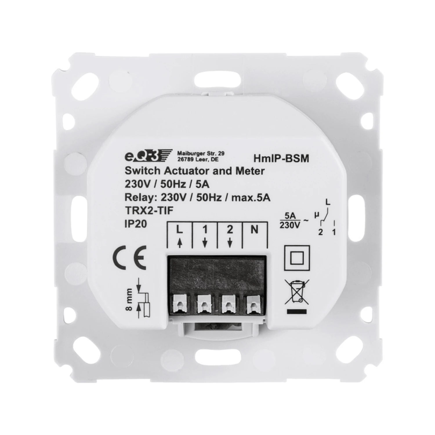 Über diesen Schalt-Mess-Aktor können verbundene Homematic IP Komponenten nicht nur geschaltet werden – auch deren Energieverbrauch lässt sich per Homematic IP App nachvollziehen. Bestehende Markenschalter mit Rahmen und Wippe können weiterhin verwendet werden; hinter diesen wird der Schalt-Mess-Aktor samt passendem Adapter (siehe Zubehör) in der Gerätedose installiert. Dem Markenschalter kann per App oder WebUI die gewünschte Funktion zugeordnet werden.