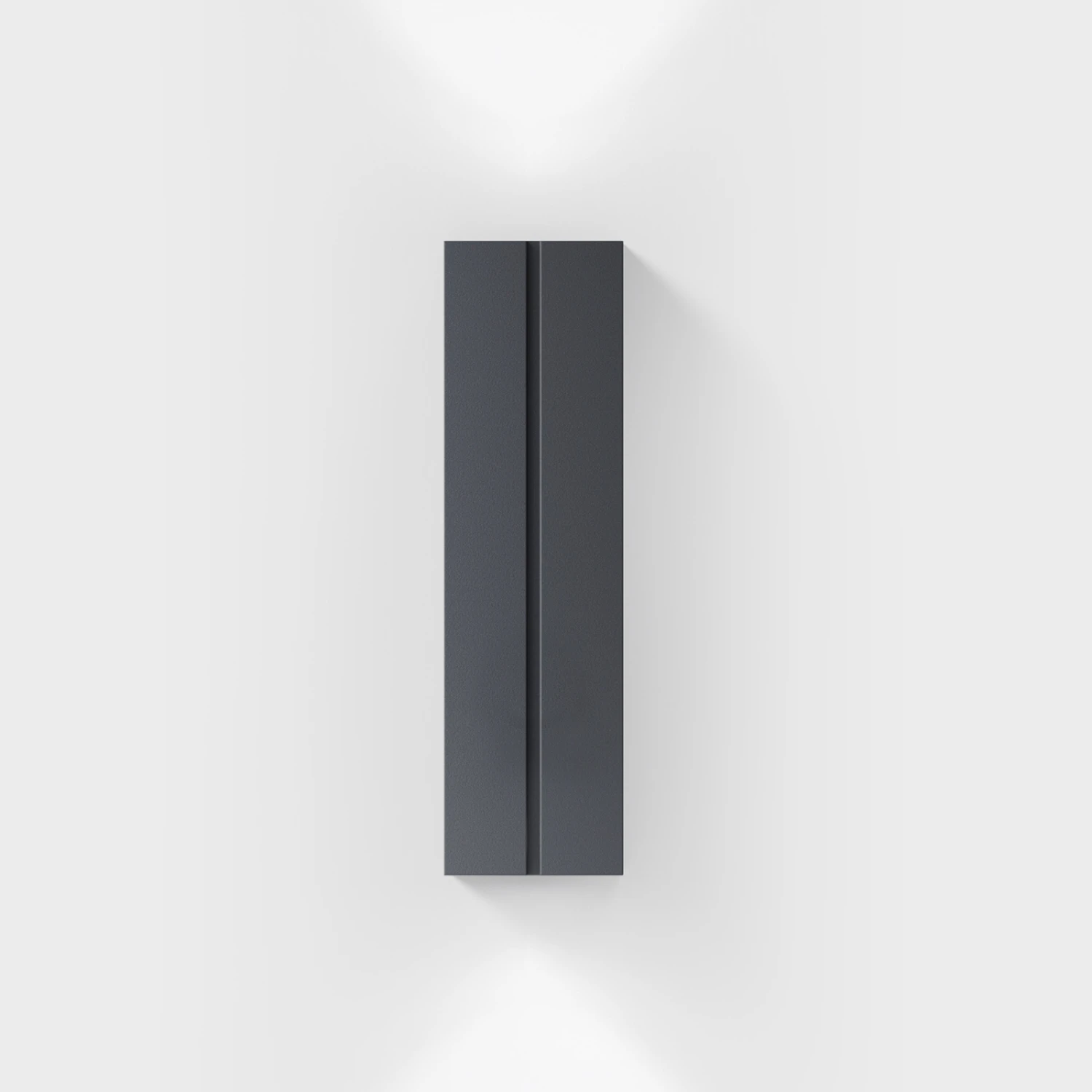 Diese LED-Außenwandleuchte ist aus hochwertigem Aluminiumguss hergestellt und hält dank hoher Schutzart jeglichen Witterungseinflüssen stand. Ihr schlanker, schmal konzipierter Körper verfügt außerdem über zwei Linsen aus Sicherheitsglas, die jeweils oben und unten in den Korpus eingelassen sind und ein gerichtetes, punktuelles Licht erzeugen. Die an der Hausfassade entstehenden Lichtkegel sorgen für direktes sowie indirektes Licht, das nicht blendet. Der nach oben gerichtete Lichtstrahl setzt die Außenwand gekonnt in Szene, während der nach unten gerichtete für sichere Beleuchtung bei Dunkelheit sorgt. So werden bei cut Ästhetik und Funktion bewusst miteinander kombiniert und spiegeln damit die Philosophie des bekannten Unternehmens IP44.de wider, das durch seine hochwertigen Lichtkonzepte für den Außenbereich hohe Beliebtheit genießt.