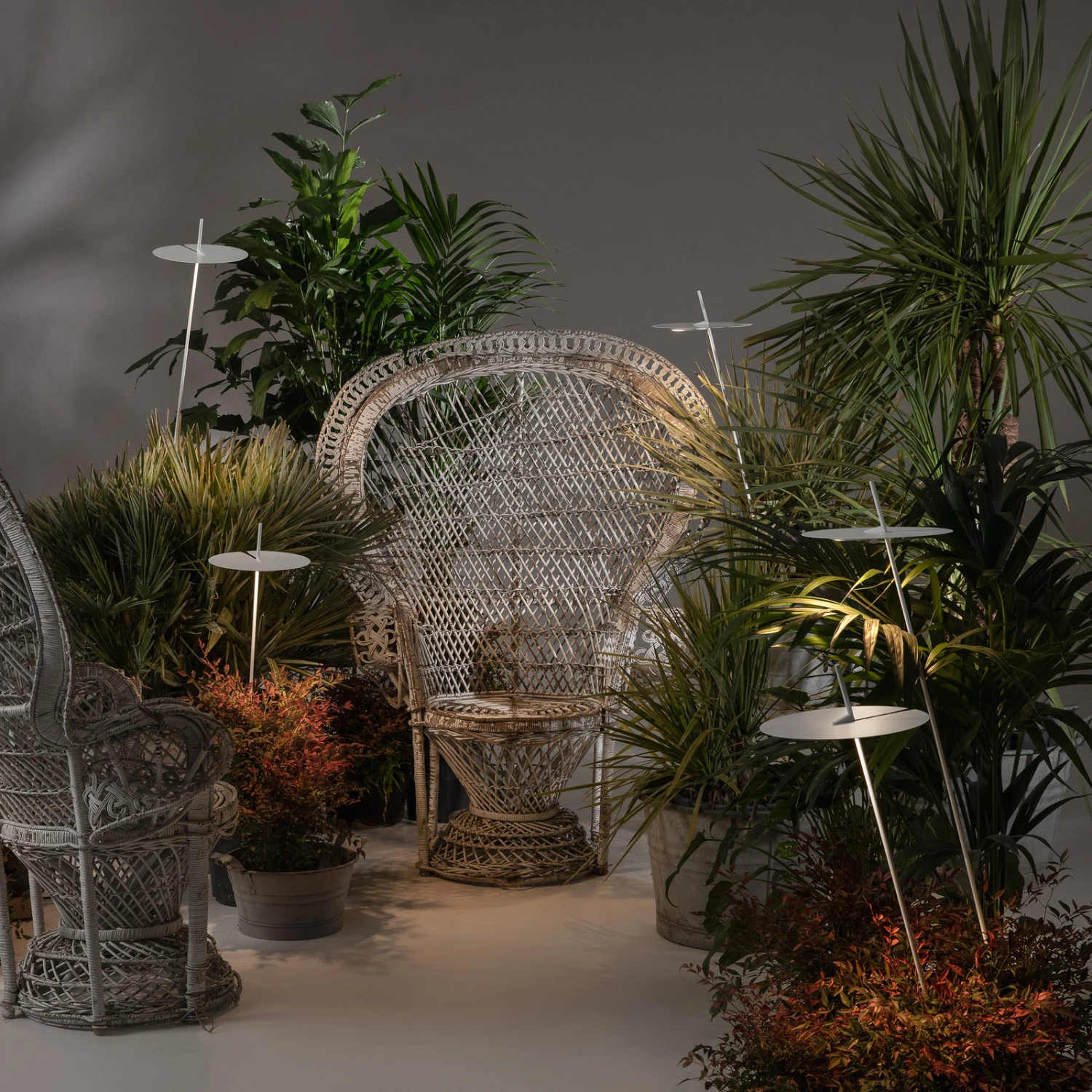 Edmondo Testaguzza hat sich für das Design der attraktiven Außenleuchte an einem asturischen Mythos bedient. Wunderschöne Feen und Wassernymphen mit ihrem verführerischen Gesang sind hier die Inspirationsquelle für die filigrane Lampe.