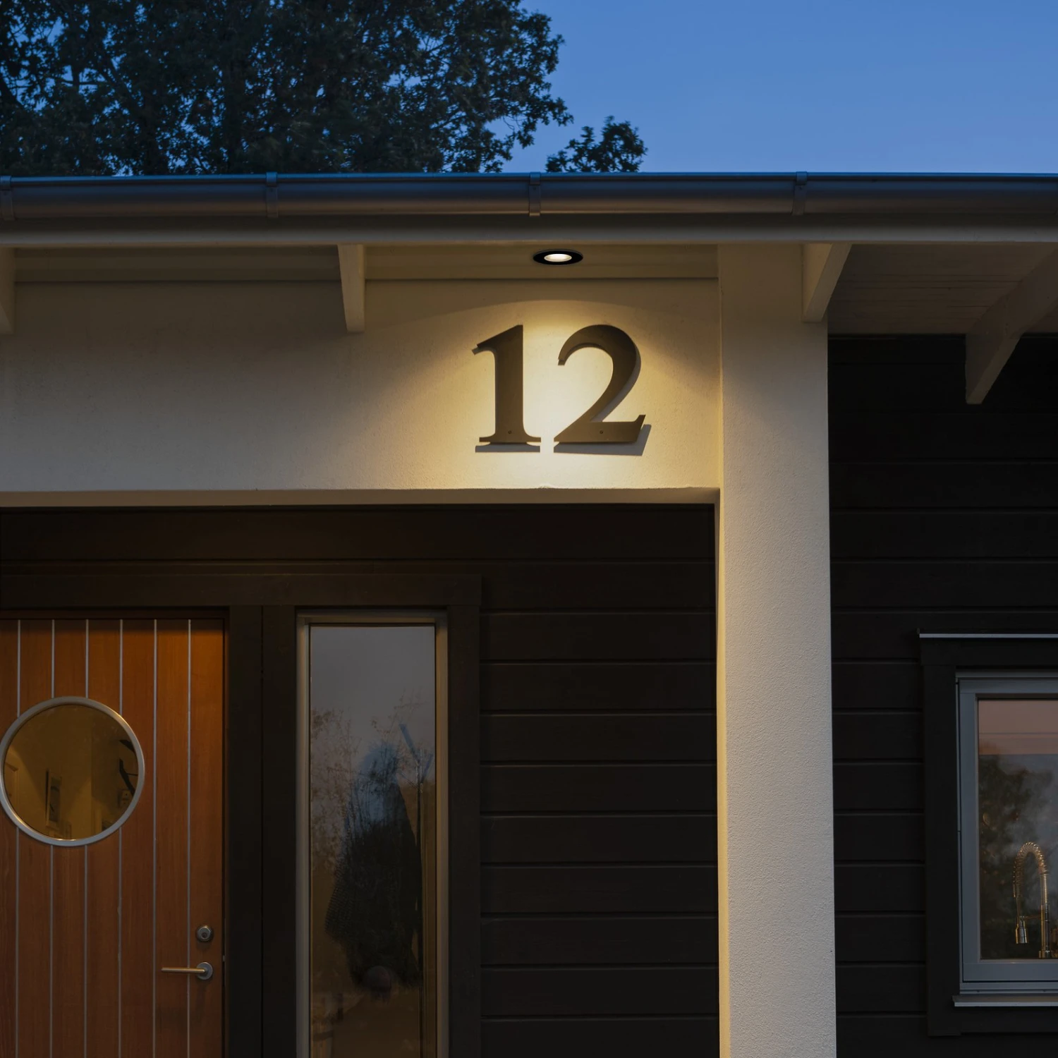 Die moderne LED-Einbauleuchte 7875 bietet sich zum Beispiel an, um eine nahezu unsichtbare Beleuchtung an Dachüberständen anzubringen. Die flachen Einbauleuchten sind mit einem aus Kunststoff bestehenden Rahmen ausgestattet, der die Glasabdeckung umrahmt, unter der die moderne LED-Technik untergebracht ist. Diese leuchtet effizient und mit einem warmweißen Licht, sodass zum Beispiel Eingangsbereiche sicher und zuverlässig des Nachts beleuchtet werden.