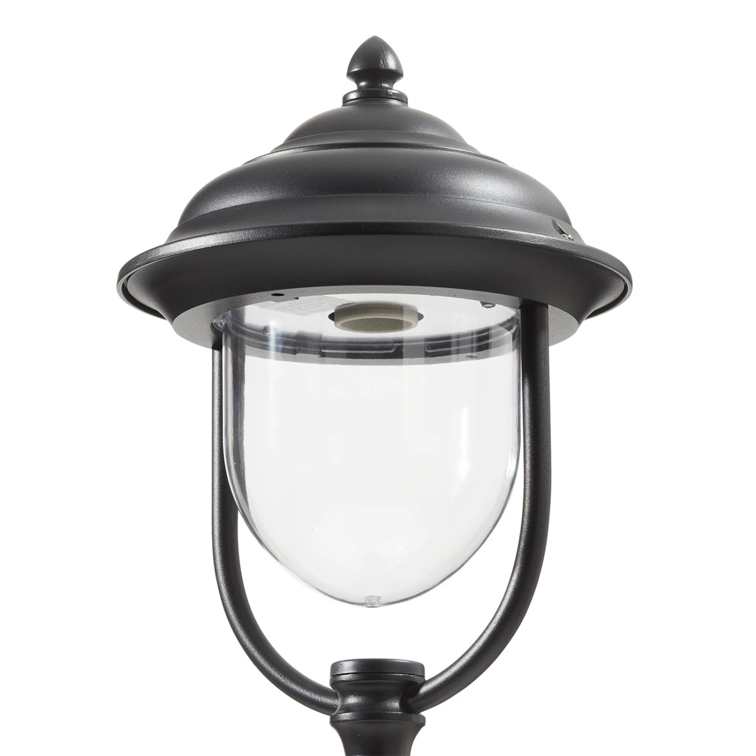 Klassische, aus Aluminium gefertigte Wegeleuchte Parma. Das klare Leuchtenglas garantiert eine optimale Ausleuchtung. Der schön geformte Schirm und die Verzierungen an Leuchte und Mast verleihen der Leuchte eine leicht nostalgische Wirkung.