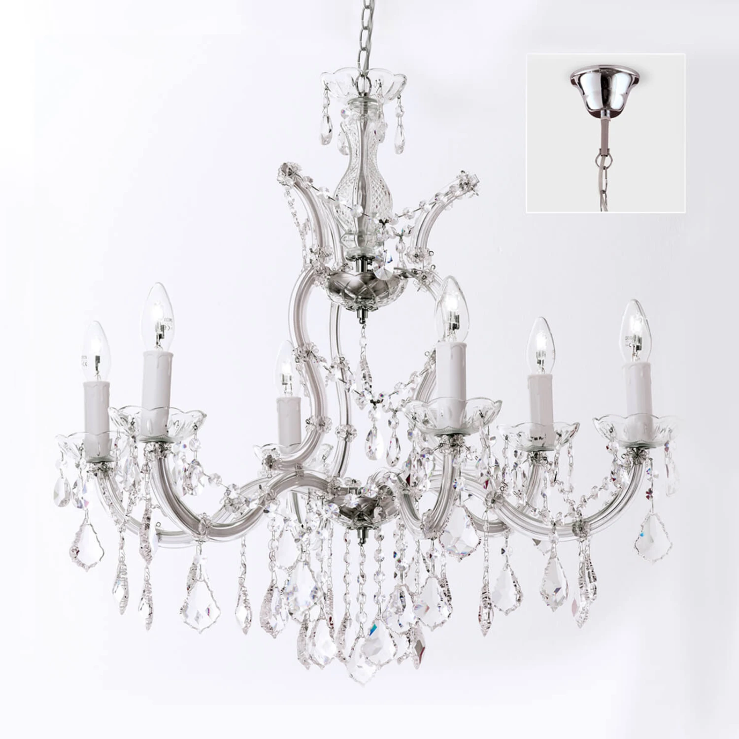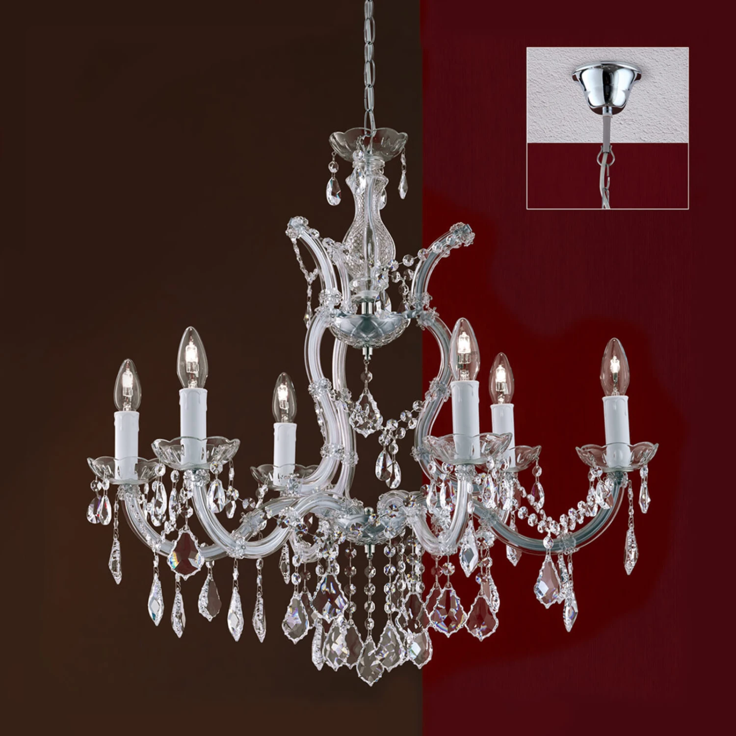 6-flammiger Kristallkronleuchter Maria Theresia: Design aus höfischer Epoche