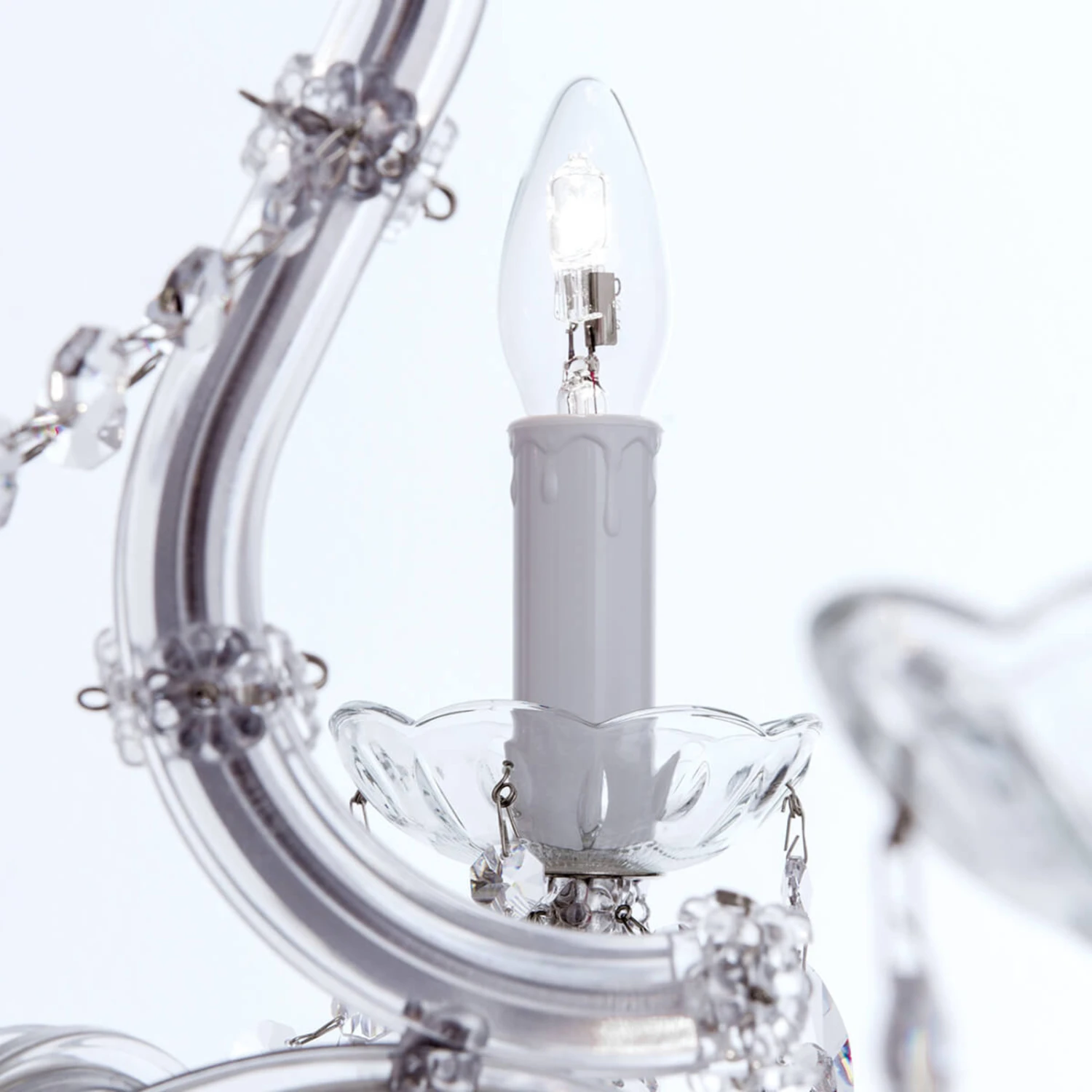 Maria Theresia war eine der prägendsten Herrscherfiguren in Österreich und ganz Europa. Aus der Zeit der Habsburger Monarchie stammen viele prunkvolle Schlösser und damit auch entsprechend herrschaftliche Luster – wie dieser opulente Kristallkronleuchter, der den Namen der bekanntesten österreichischen Herrscherin des 18. Jahrhunderts trägt. Das Design ist originalgetreu dieser höfischen Epoche nachempfunden: Das verschnörkelte Gestell ist mit Verdyl, einem glasähnlichen Material verkleidet. Die verspielte, üppige Behang ist aus feinstem Bleikristall (Asfour-Kristall). Die Glastassen unter den Leuchtmitteln verstärken den Eindruck, es würde sich auch heute noch um echte Kerzen handeln, die den Kronleuchter erstrahlen lassen.