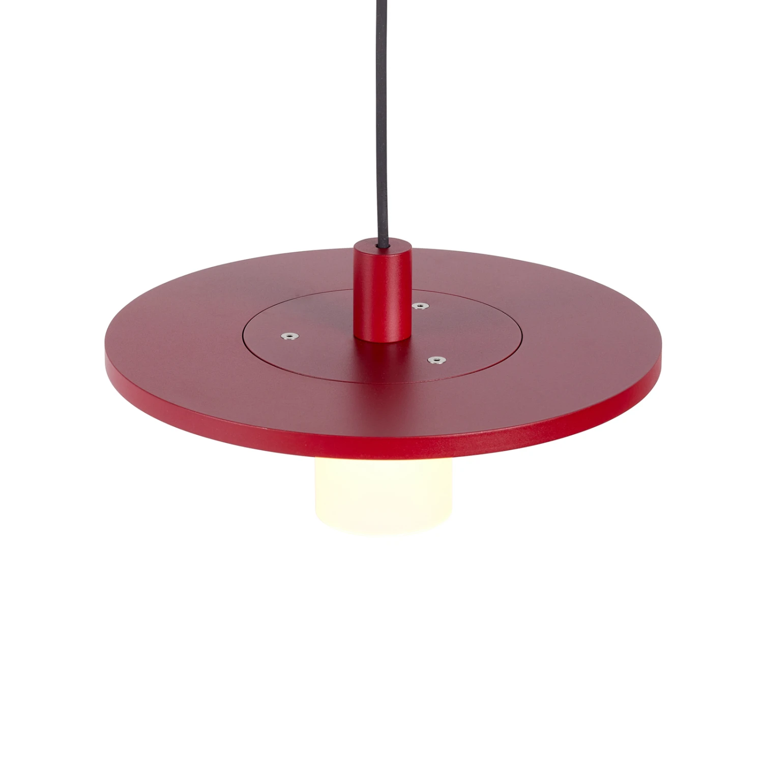 Die Leuchtenserie Montoya der Barcelona ansässigen Designer Jordi Veciana und Skye Maunsell interpretiert klassische Außenleuchten neu in modernem, minimalistischem Konzept. So werden Baldachin und Schirm jeweils auf ein flaches, rundes Aluminiumelement reduziert. An der Unterseite des Schirms befindet sich die warmweiß strahlende LED-Lichtquelle innerhalb eines kleinen Zylinders aus sandgestrahltem Glas. Ein schwarzes Kabel komplettiert die Außenpendelleuchte Montoya.