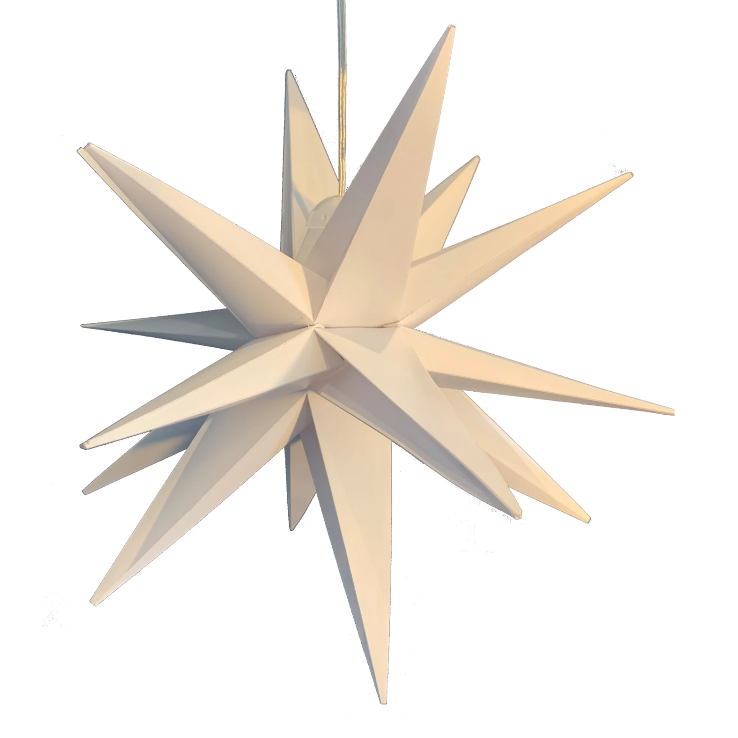 Dieser schöne, mit 18 Zacken sehr aufwändig gestaltete Stern aus wetterfestem Kunststoff eignet sich sowohl für die winterliche und weihnachtliche Dekoration von Innenräumen als auch des Außenbereichs. Die LED-Beleuchtung und ein ca. 5 Meter langes Anschlusskabel sind im Lieferumfang enthalten.