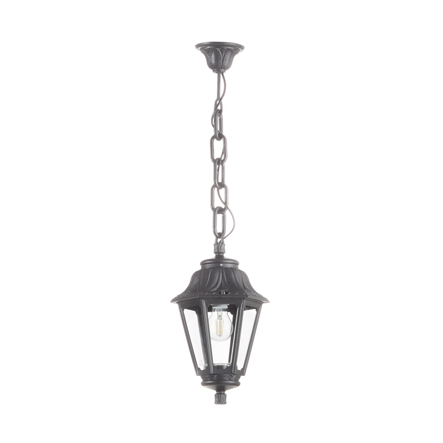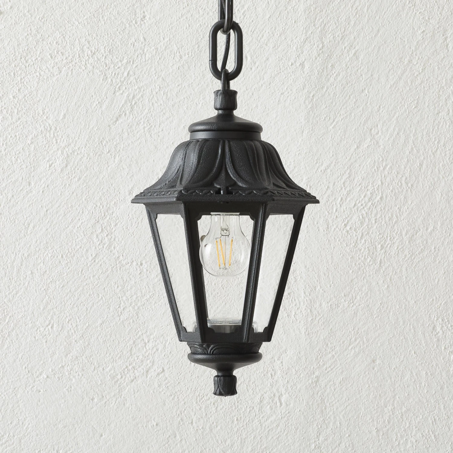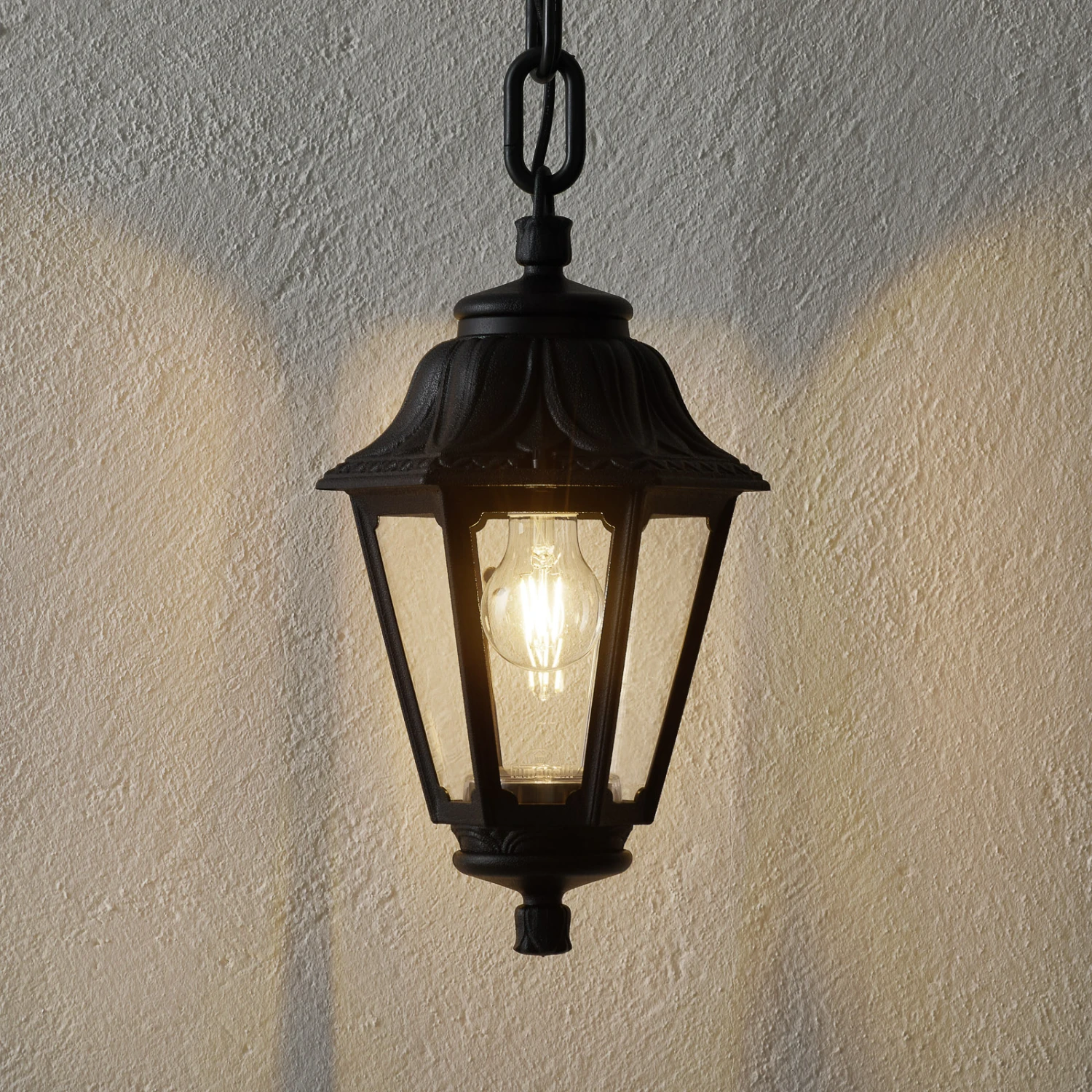 Außen-Hängeleuchte Sichem Anna als Laterne mit klaren Scheiben – inkl. 6 W LED-Filamentlampe