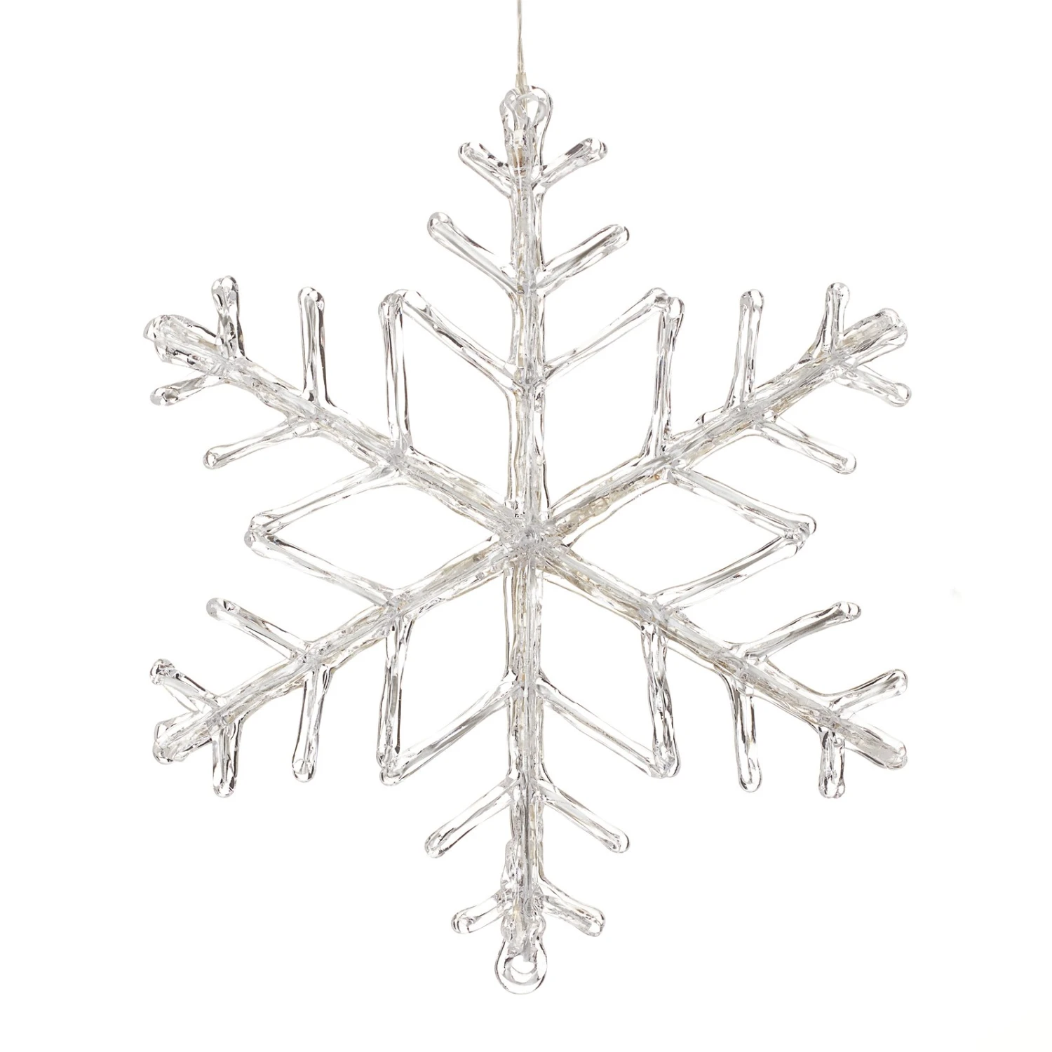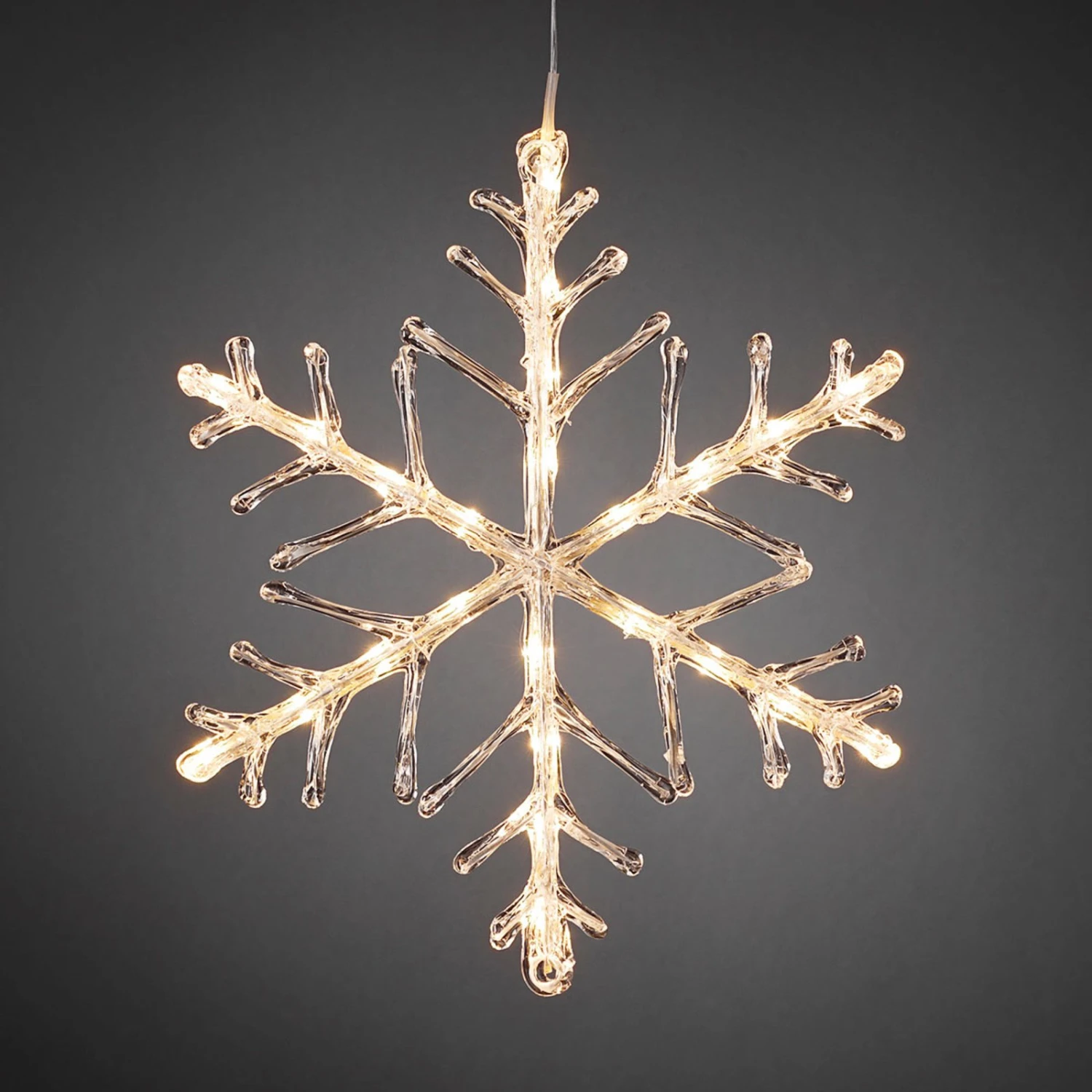 Mit dieser leuchtenden Schneeflocke lässt sich jeder Außenbereich winterlich verzaubern. Ob an der Eingangstür, dem Balkon oder Bäumen und Sträuchern – die Schneeflocke eröffnet zahlreiche Gestaltungsmöglichkeiten.