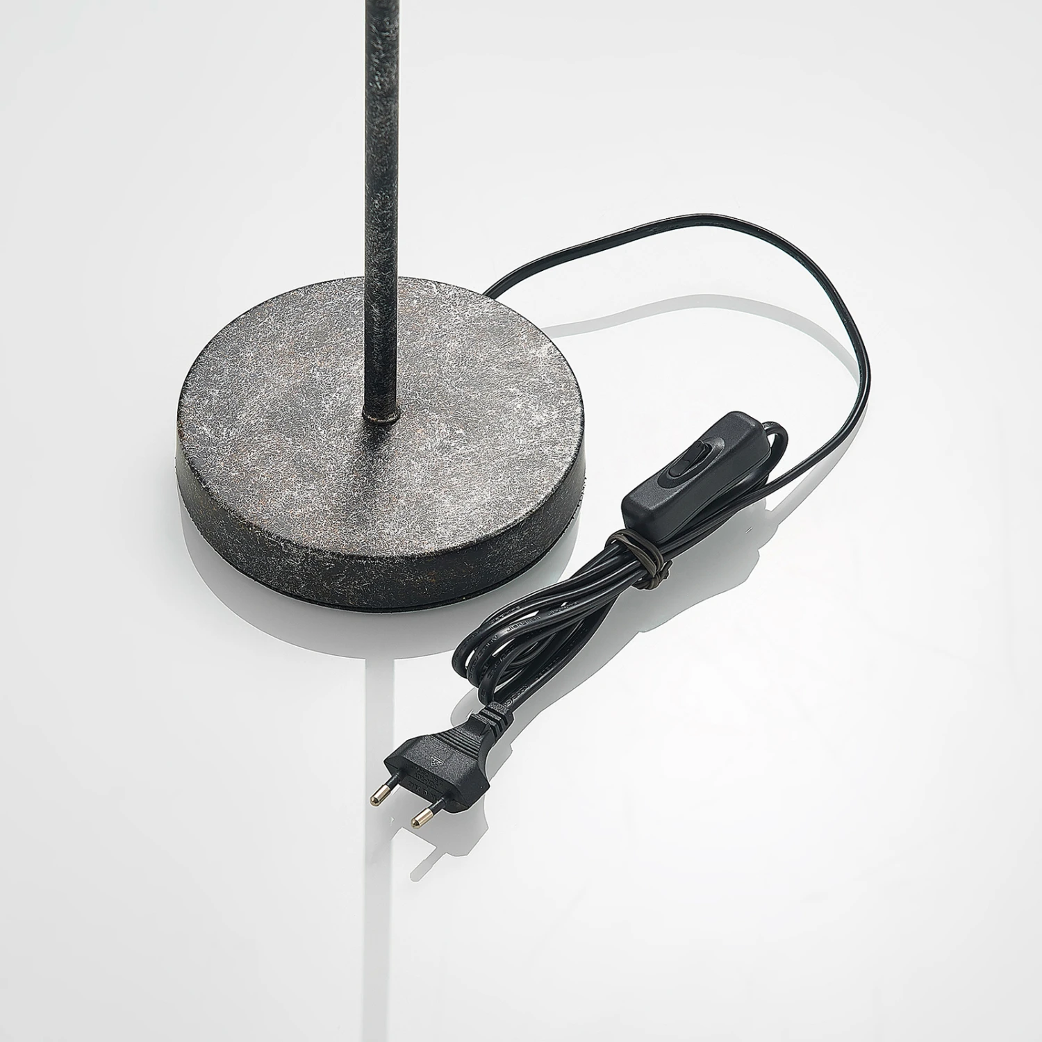 Detailreduzierte Tischleuchte Erivana mit Antikfinish und frei sichtbarem Leuchtmittel