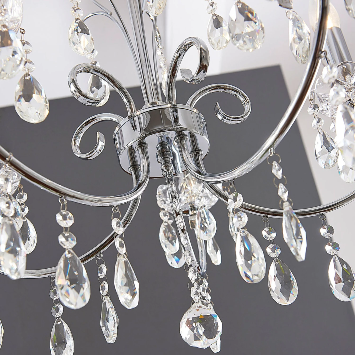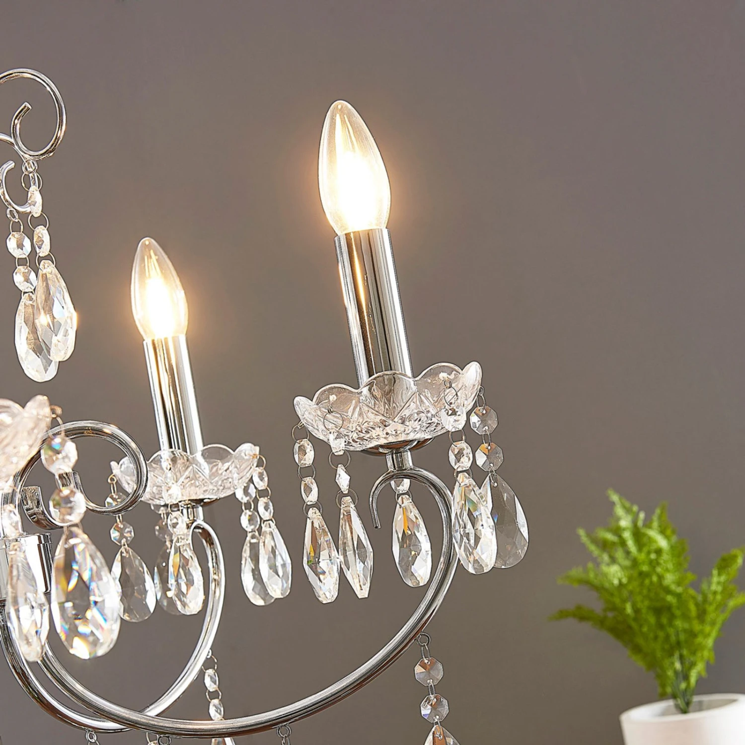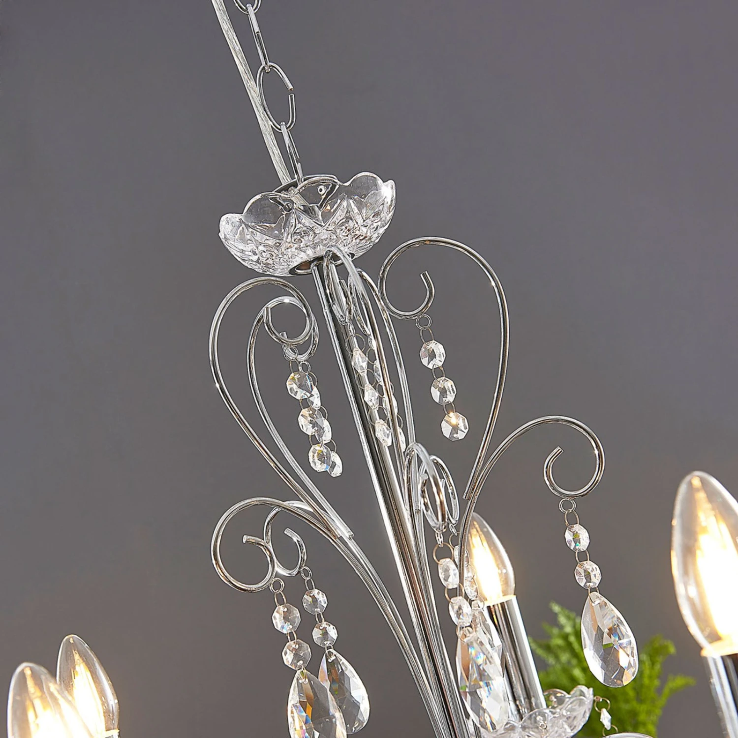 Reich verzierter Kronleuchter Solveig mit geschliffenen Kristallen und verchromtem Metallgestell