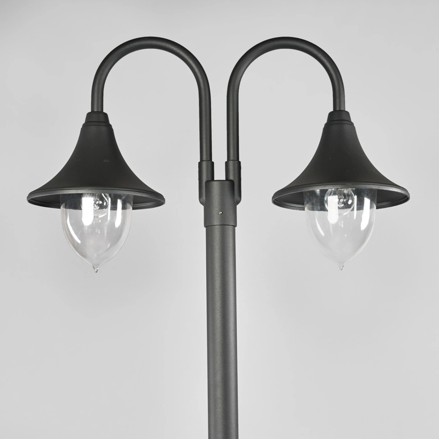 Der Kandelaber Madea passt zu vielen Umgebungen von Häusern bzw. Garten- und Parkanlagen und kann mit allen passenden Lampen, die einen E27-Sockel haben, bestückt werden. Dabei handelt es sich nicht nur um Glüh- und Halogenlampen, sondern auch um Energiespar- und LED-Leuchtmittel. Die grafitgraue Oberfläche wirkt zeitlos und dezent.