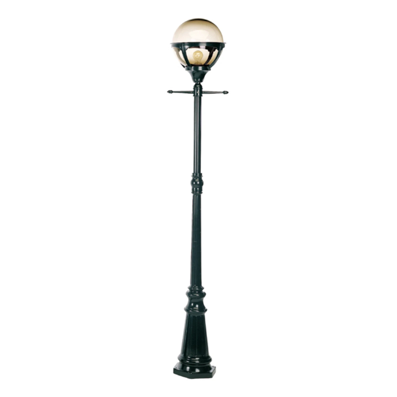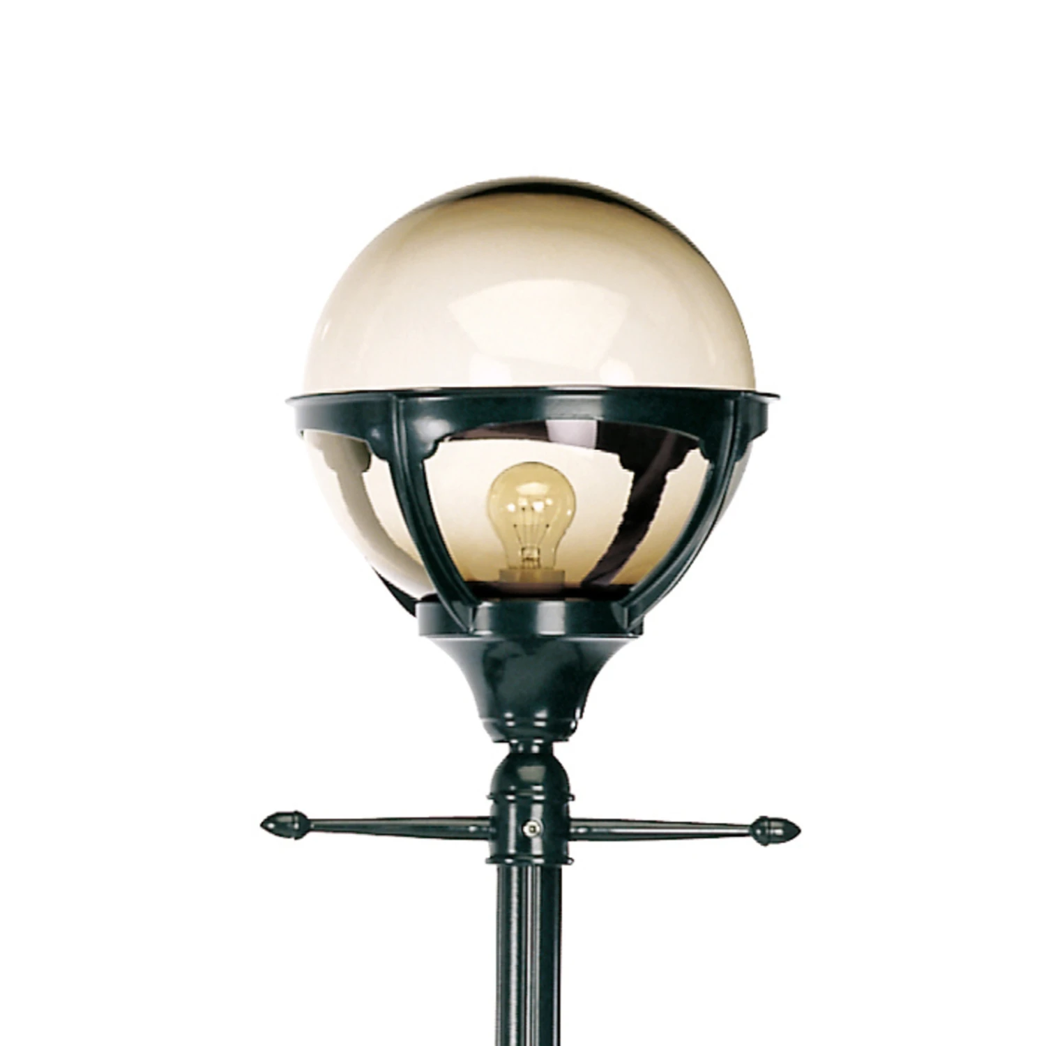 Diese ansprechend gestaltete Leuchte besitzt eindeutig klassische Züge: die transparente Kugel harmoniert perfekt mit dem dunklen Metallkörper. Das dekorativ geformte Metall unterstreicht die geschmackvolle Wirkung dieser Leuchte. Der Körper sorgt für eine angemessene und angenehme Lichtwirkung. Selbst in ausgeschaltetem Zustand schmückt diese Leuchte jeden Außenbereich.
