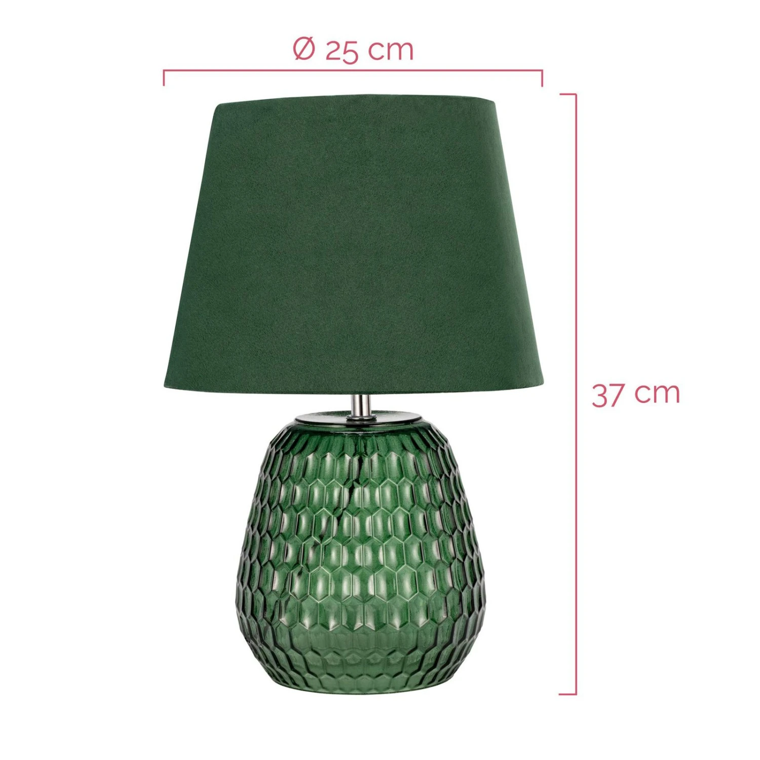 Tischleuchte Crystal Velours mit grünem Standfuß in Kristalloptik