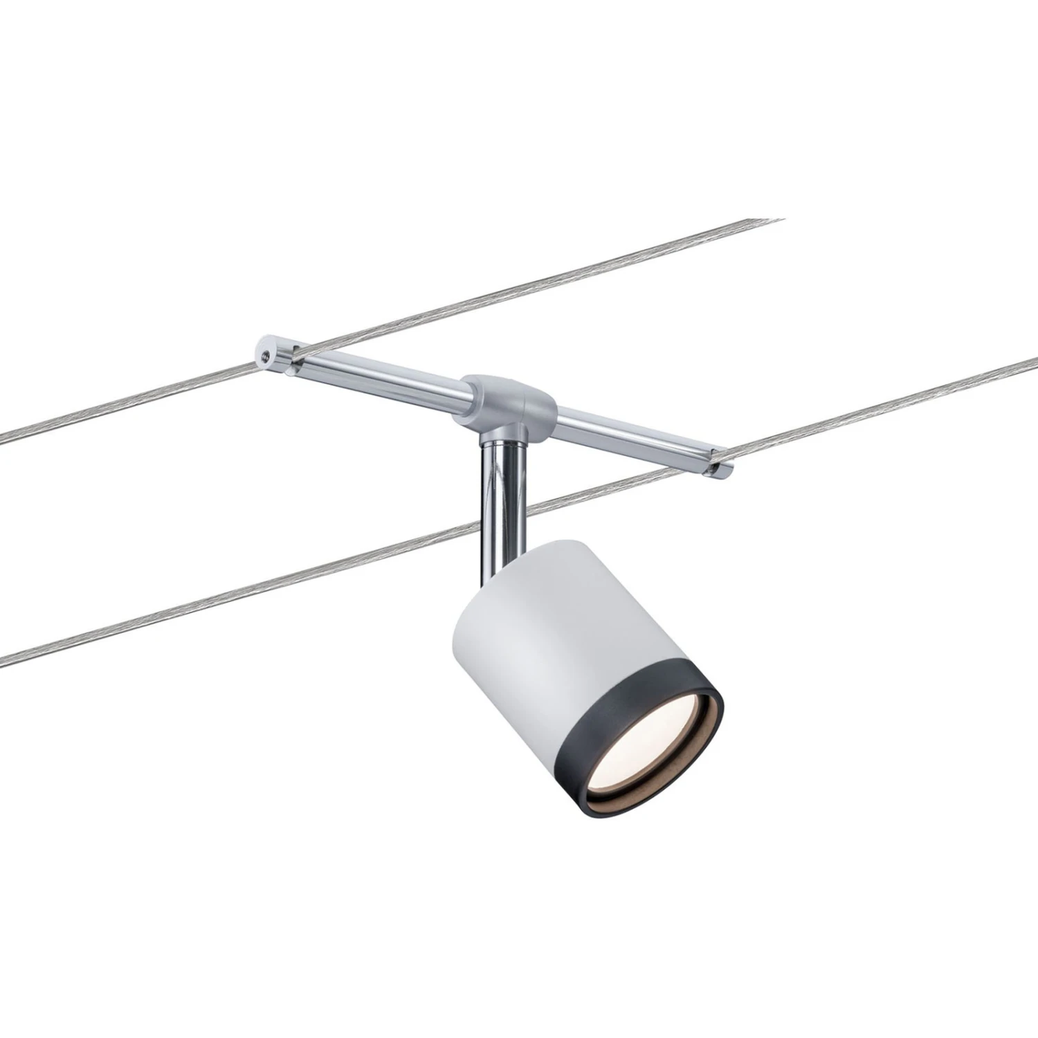 Das Licht der fünf weißen Strahler des Seilsystems TubeLED erreicht wirklich jeden Winkel des Raumes. Zum einen sind die Strahler dreh- und schwenkbar, sodass sich die Ausrichtung des Lichtkegels ganz individuell anpassen lässt. Des Weiteren können die Strahler an dem Seil hin und her bewegt werden, um so eine perfekte Ausrichtung zu ermöglichen. Die Strahler verfügen über fest verbaute LEDs, die den Raum mit einem warmen Licht versorgen. Um das Seilsystem in Betrieb zu nehmen, ist ein Trafo notwendig, der bereits im Lieferumfang enthalten ist. Das Seilsystem ist ausschließlich zur Deckenmontage geeignet.