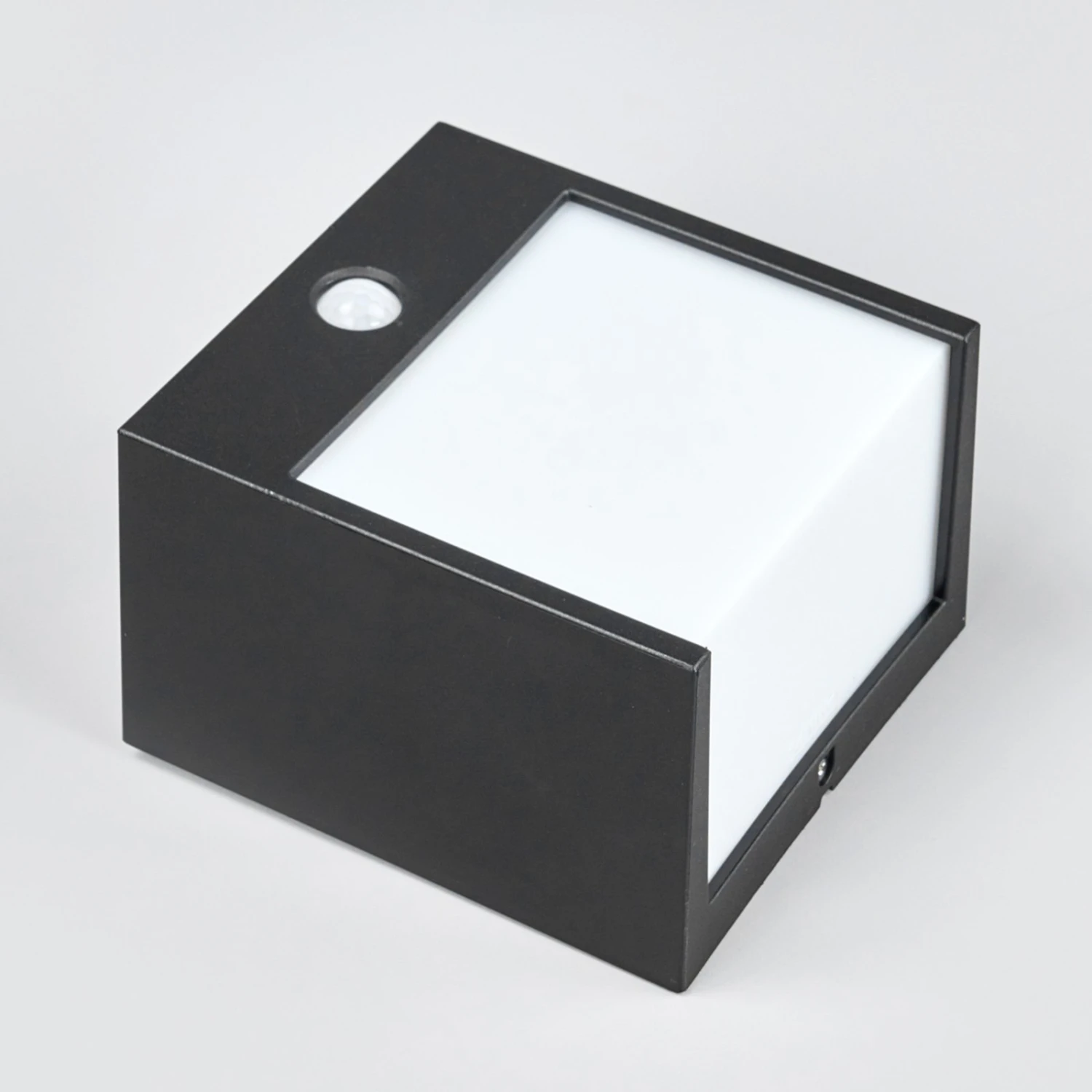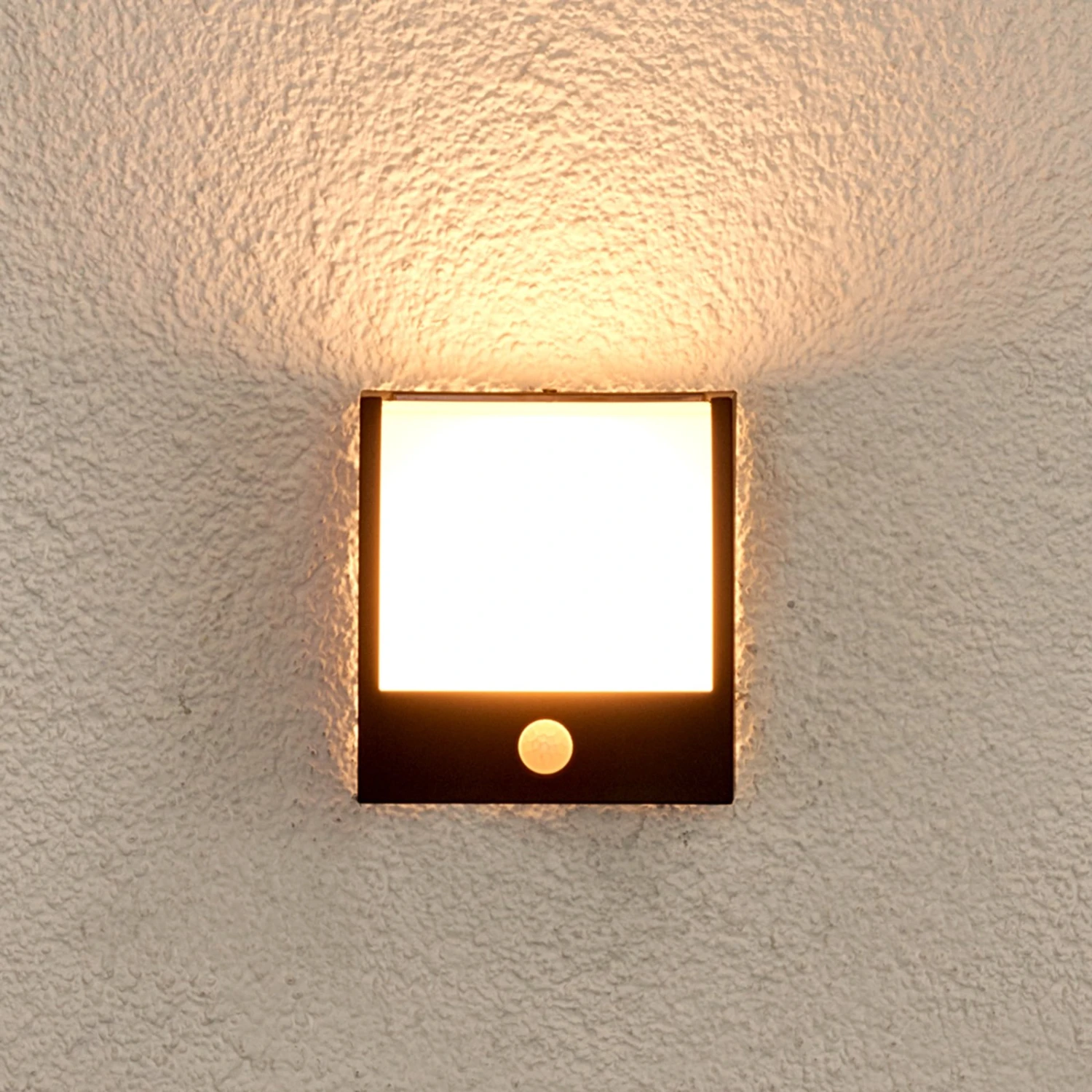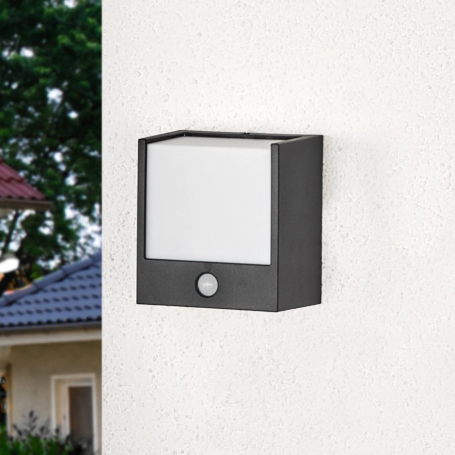 Eckige LED-Außenwandlampe Macaw mit integriertem Bewegungsmelder