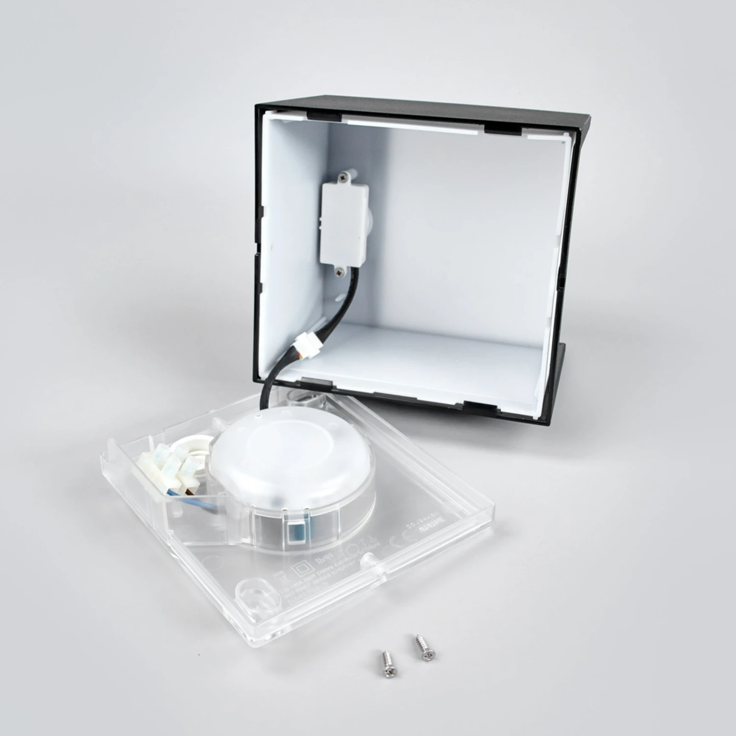 Macaw überzeugt mit einer modernen, zeitgemäßen Bauweise und schlichter Eleganz. Der eckige Leuchtenkörper der LED-Außenwandlampe besteht aus Kunststoff, wobei das Gestell schwarz und die Abdeckung über den LED-Leuchtmitteln weiß ist. Der Lichtschein ist durch die spezifische Bauweise nach vorne und oben gerichtet und wird durch díe weiße Kunststoffabdeckung gleichmäßig verteilt. Damit wird Macaw als Außenwandlampe zu einem guten Beispiel, dass auch im Außenbereich eine atmosphärisch schöne Beleuchtung richtig was hermachen kann.