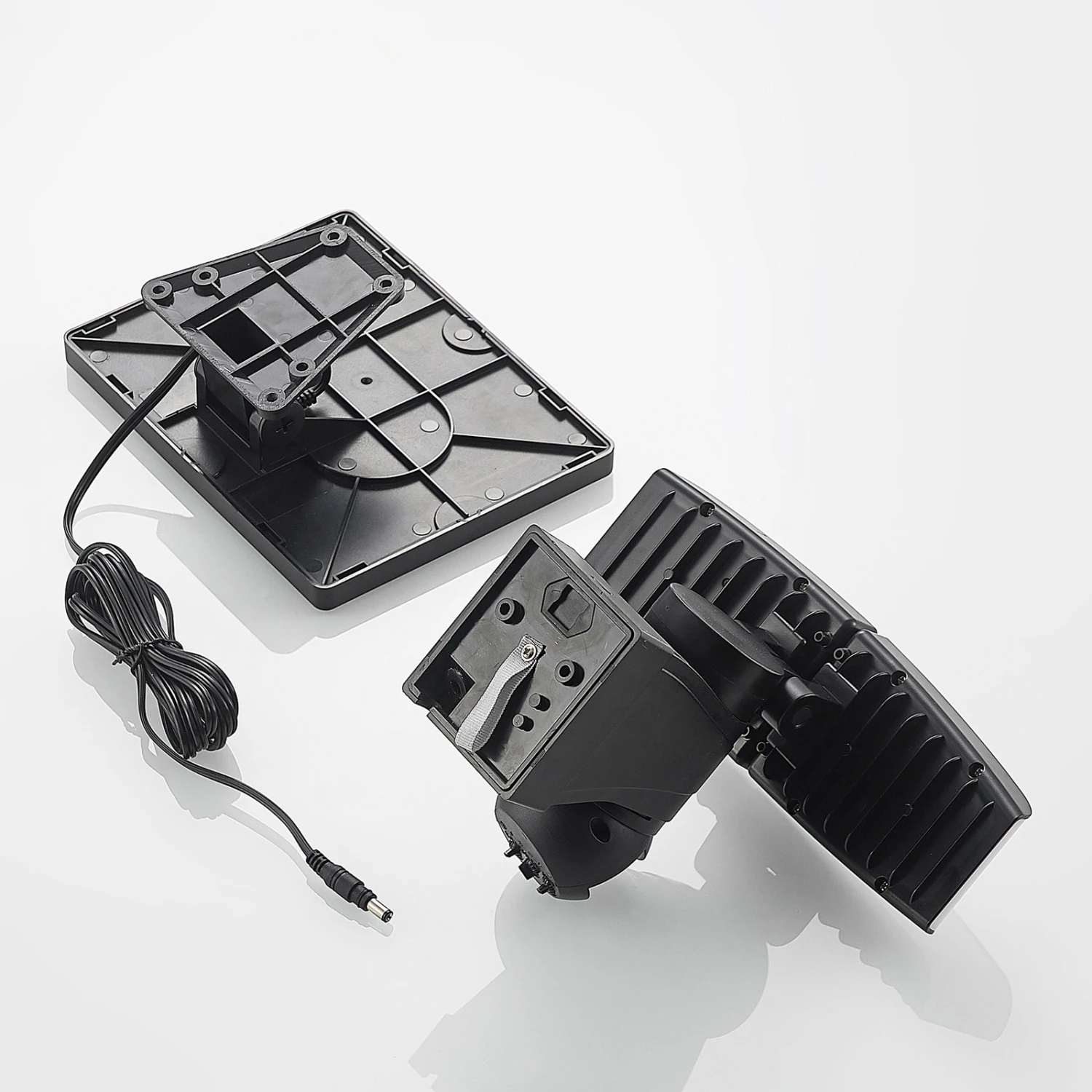 Der LED-Solar-Wandstrahler Kalvito wurde aus Kunststoff hergestellt und besitzt zwei leuchtstarke LED-Module, die mithilfe eines Solarpanels betrieben werden. Die LEDs bieten genügend Leuchtkraft in der Lichtfarbe Tageslicht, was gerade zu Abendstunden am Hauseingang oder an der Einfahrt äußerst praktisch ist. Die Spots sind bei Bedarf schwenkbar, wodurch der Abstrahlwinkel individuell bestimmt werden kann. Der integrierte Sensor registriert in einem Winkel von 140° und in einer Entfernung von maximal 10 Metern Bewegungen. Außerdem lässt die Leuchtdauer sich zwischen 3 Sekunden und 7 Minuten individuell einstellen. Die Schutzart IP44 sorgt für eine gute Langlebigkeit dieser Leuchte im Außenbereich.