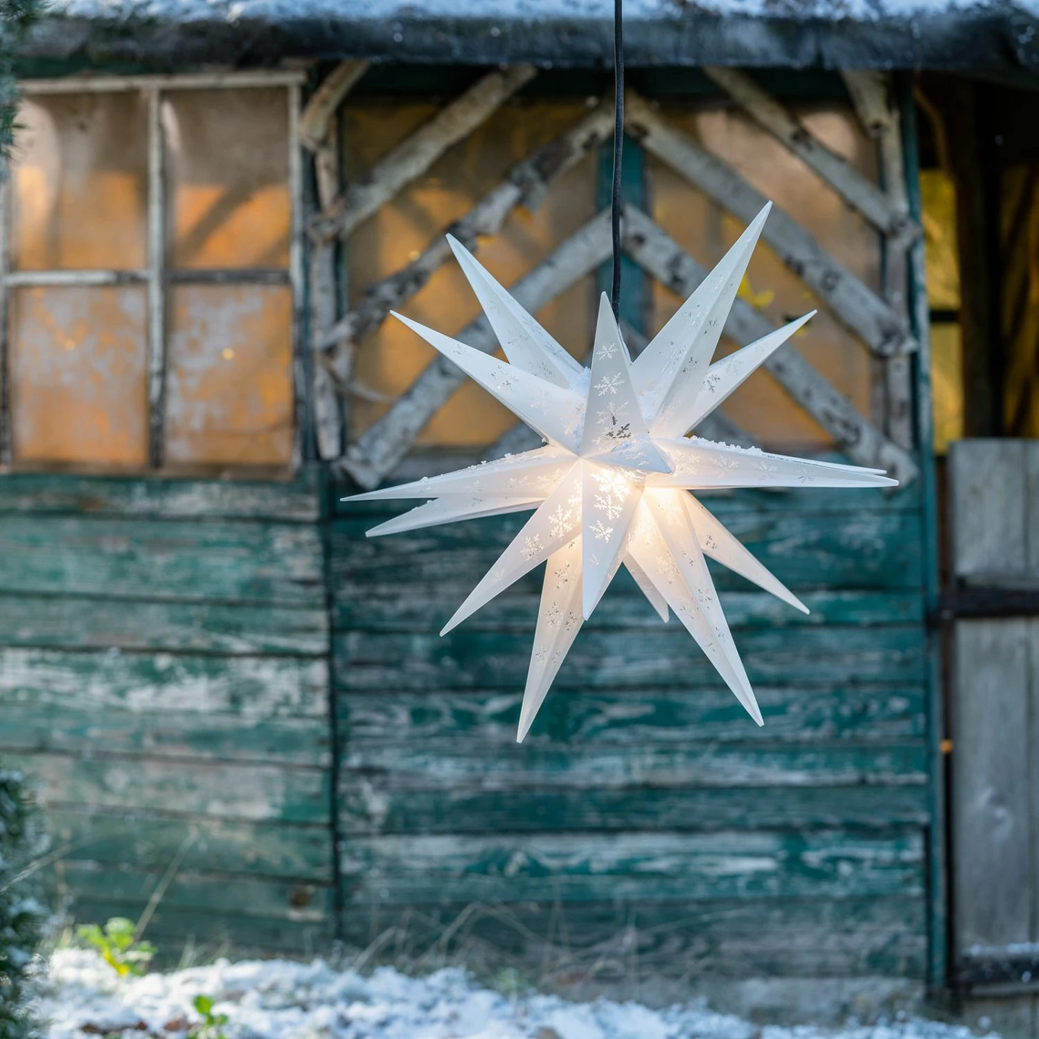 Deko-Stern für außen mit Schneeflockendruck – 18-Zacker