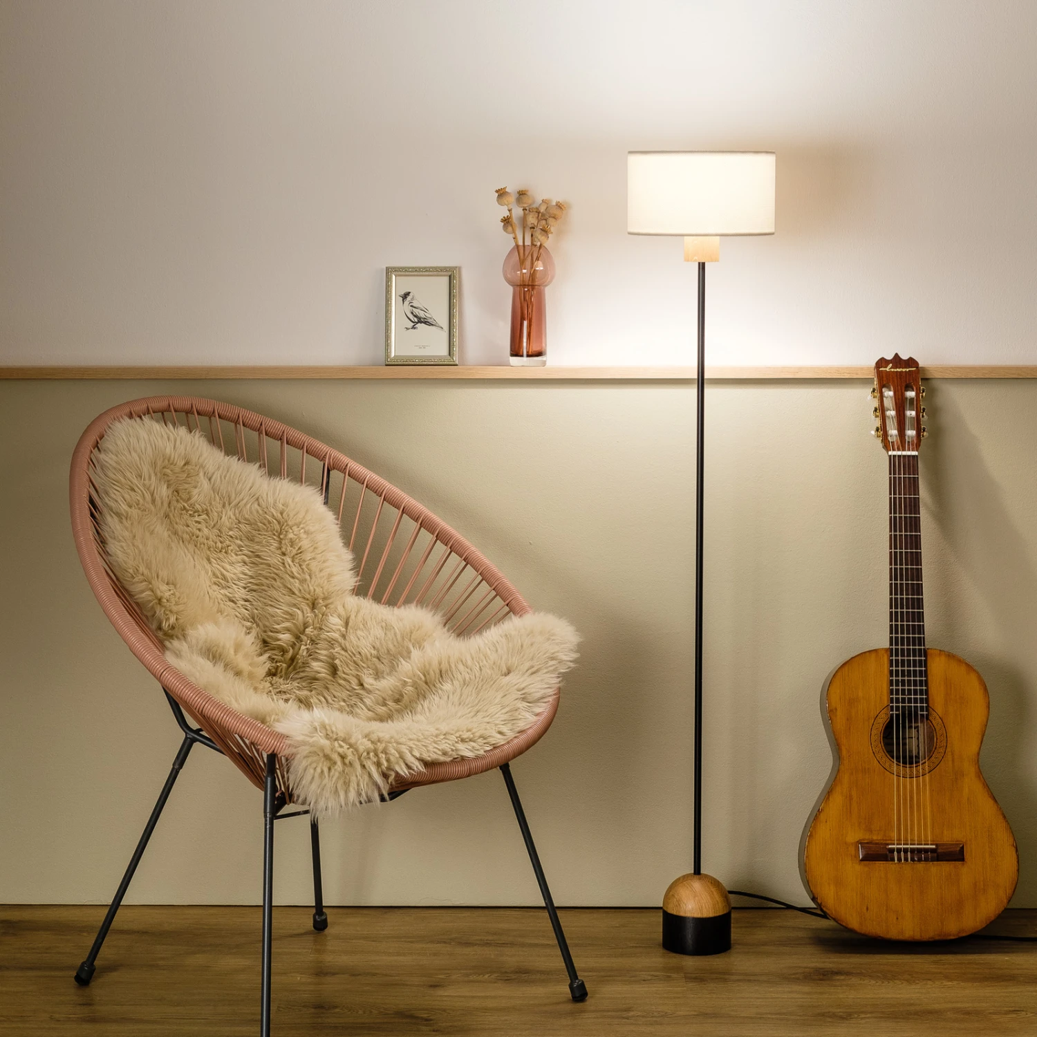 Smilla ist eine zeitlose Stehleuchte, die bewusst auf schlichtes Design und bewährte Technik setzt. Das Charakteristische an Smilla ist der wohlproportionierte, aus Massivholz gedrechselte Leuchtenfuß. Er besteht aus einem schweren schwarzen Sockel und einem geölten Kugelabschnitt aus Eiche. Ein echtes Stück Natur. Die Holzart findet sich optisch im Fassungshalter wieder, der gewollt einige Zentimeter unter dem Schirm hervorschaut. Das ausgesprochen schöne, graphische Durchlicht des Lampenschirms Trooper wirkt erfrischend lässig und rundet die Stehlampe gekonnt ab. Sie ist außerdem mit einem Fußdimmer ausgestattet, der das Regulieren der Helligkeit ermöglicht.