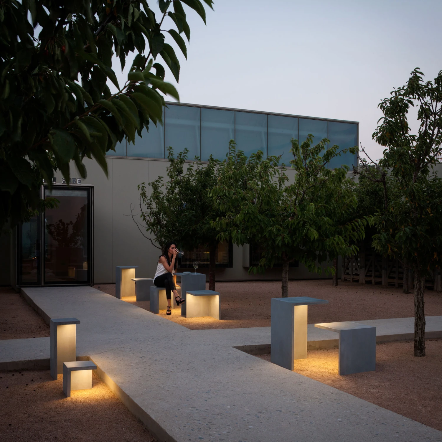 Ob in einem Garten, auf einer Terrasse oder am Wegesrand – die Außenleuchte Empty setzt ihre Umgebung in Szene. Sie besteht aus robustem Polymerbeton, das bei jeglichem Klima standhält und zusätzlich die angebrachten LED-Strips vor Witterung schützt. Die obere Fläche der Leuchte kann bis maximal 150kg belastet werden und eignet sich durch ihre Maße als Sitzgelegenheit oder Ablagefläche. Denn die Leuchte ist nicht nur zur Ausleuchtung gedacht, sondern vereint getreu dem Konzept „Furniture meets Light“ die Funktionalität eines Möbelstücks mit der einer Lampe.