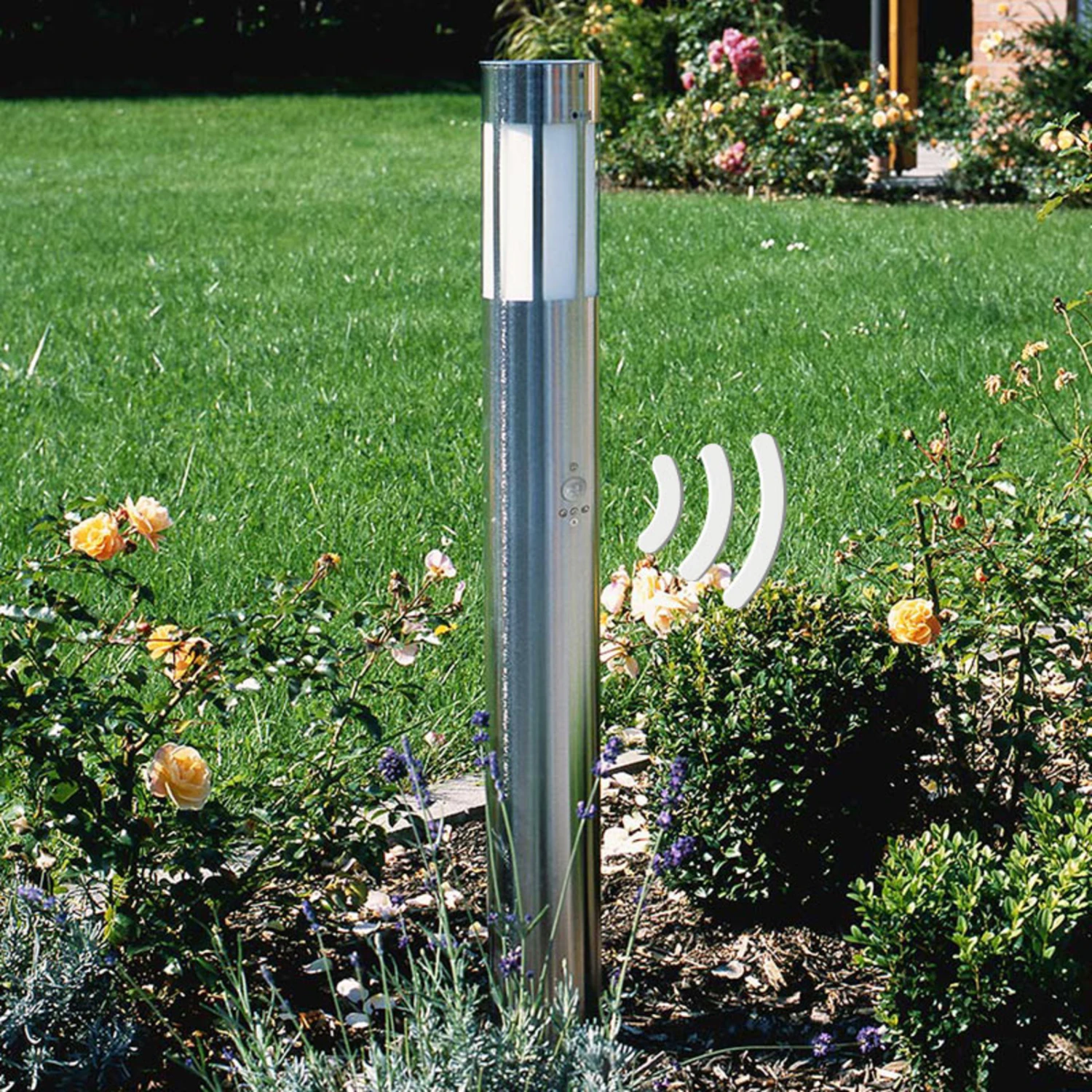 Die zylinderförmige, lange Wegeleuchter 475 ist ein Erzeugnis eines deutschen, traditionsreichen Leuchtenherstellers. Seine Produkte sind von jeher bekannt für ihre wertbeständige und stabile Verarbeitung, welche sie auch den hochwertigen Rohstoffen zu verdanken haben, die bei dem Hersteller Verwendung finden. Außerdem werden alle Produkte in der deutschen Heimat der Manufaktur angefertigt. Die elegante Wegeleuchte 475 ist ein äußerst attraktiver Blickfang, denn der edle Edelstahl und das hochwertige Glas fügen sich wunderbar zu einem harmonischen Gesamtbild zusammen. Die funktionale Wegeleuchte ist mit einem Bewegungssensor ausgestattet, welcher neben der hellen Leuchtkraft der Leuchte für zusätzliche Sicherheit sorgt. Die Nennspannung des Bewegungsmelders beträgt 230V/50Hz, die maximale Schaltleistung beläuft sich auf 1000W. Der Eigenverbrauch beträgt in etwa 1,5W. Der Erfassungsbereich ist 110 Grad, die Reichweite hängt von Montagehöhe, Temperatur und Annäherungsrichtung ab und beträgt ca. 8 bis 10 Meter. Die Zeiteinstellung ist, wie auch die Helligkeitseinstellung (von 5 – 1000 Lux) stufenlos variierbar (von 2 Sekunden bis 20 Minuten). Außerdem ist die Leuchte mit Schutzart IP44 ausgerüstet. Die Montage ist an vielen Orten möglich (auf Fundament oder Erdstück 4001013).